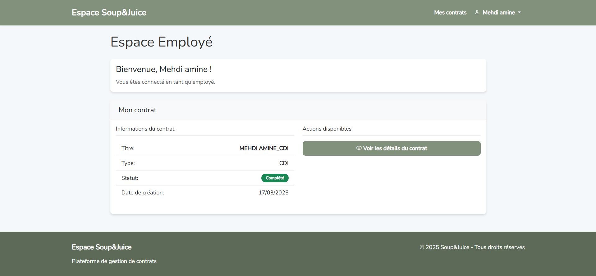 Application web de création de contrats pour Soup & Juice développée avec Laravel et utilisant une base de données MySQL.